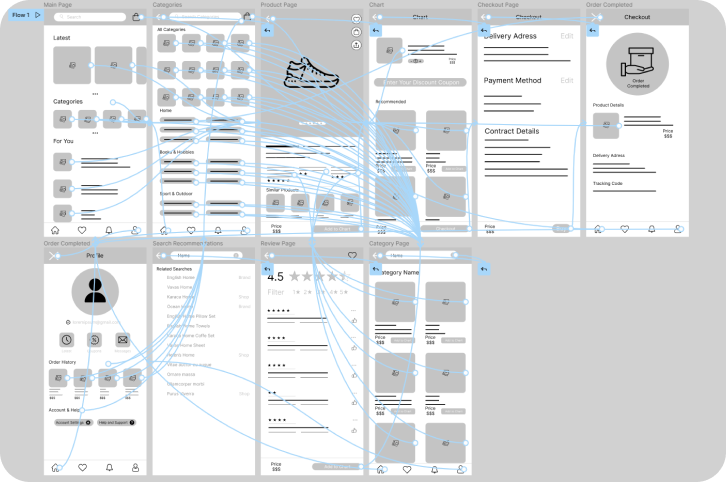 The low-fidelity prototype connected the primary user flow of building and ordering a product, so the prototype could be used in a usability study with users.